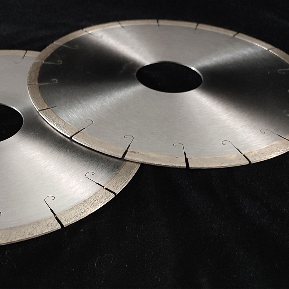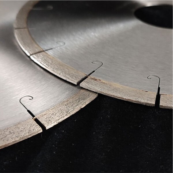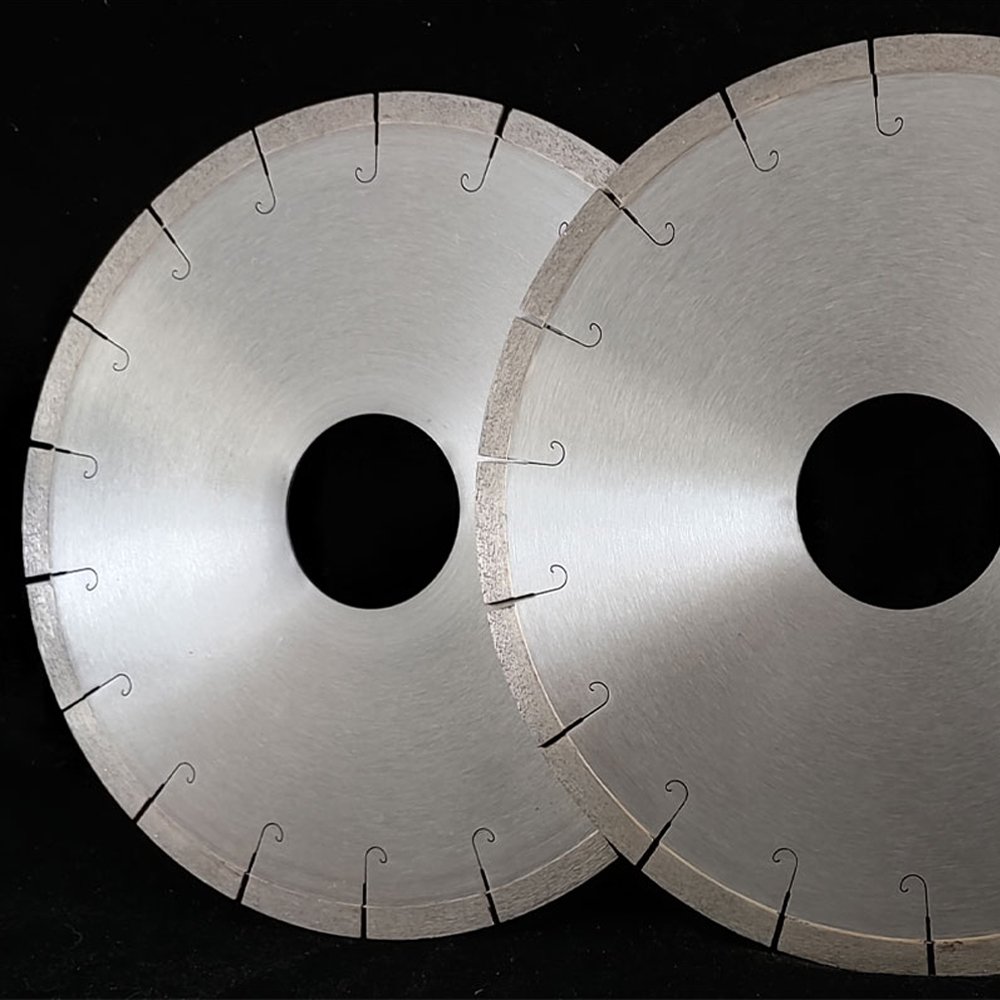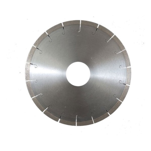 The Fish Hook Quartz Stone Diamond Blade is a professional-grade diamond saw blade specifically engineered for cutting high-hardness, high-density engineered stone materials such as quartz. Quartz stone, manufactured through vacuum pressing and high-temperature curing processes, features high hardness, strong abrasion resistance, and significant brittleness, placing extremely high demands on cutting tools. This blade features an innovative fish hook segment design, with unique hook-shaped geometry that creates a special “hooking” effect during cutting, significantly reducing cutting resistance, increasing feed speed, while effectively controlling chipping risks during the cutting process. Suitable for various cutting applications including quartz countertops, quartz slabs, sink cutouts, and edge trimming. Whether for batch cutting in quartz stone processing facilities or precision cutting on kitchen countertop installation sites, this blade meets the highest professional demands for quartz cutting tools with its exceptional cutting performance, smooth cutting surfaces, and extremely low chipping rate.