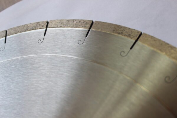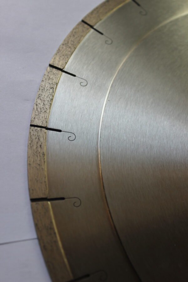 This diamond slab saw blade, featuring a unique step-shaped base, is specifically engineered for high-precision and high-efficiency cutting tasks. Its distinctive base structure, combined with high-quality diamond particles, effortlessly handles the cutting of various stones, concrete, and ceramic slabs. Whether used in stone processing plants or on construction sites, this blade delivers a smooth, straight cut with clean edges, making it the ideal choice for professionals.