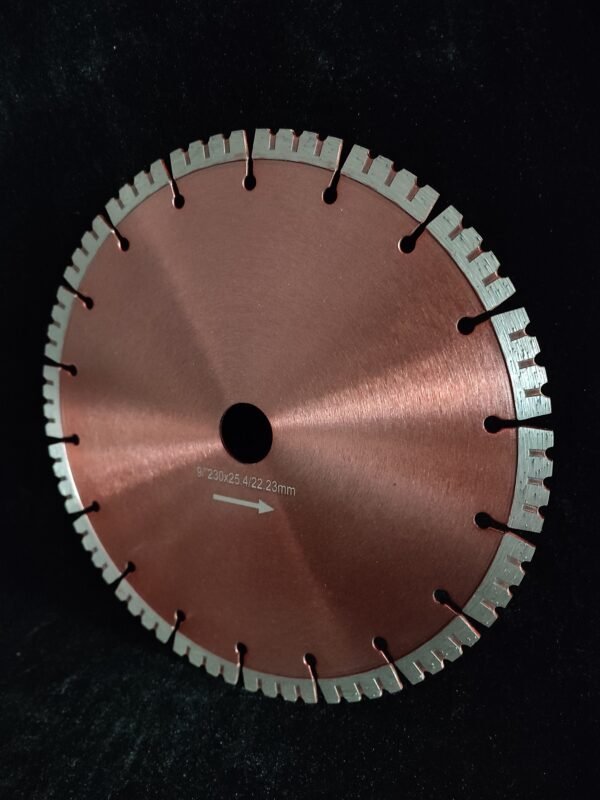 The Wavy Segmented Diamond Stone Cutting Blade is a professional-grade diamond saw blade specifically designed for efficient stone cutting. Featuring an innovative wavy segmented segment design that perfectly combines classic segmented structure with wave-shaped geometry, this blade achieves an ideal balance between cutting speed, heat dissipation, and cutting quality. The wave-shaped grooves between segments form optimized chip clearance channels and airflow spaces, generating strong airflow at high speeds that effectively cools the segments and prevents overheating. Suitable for both dry and wet cutting of various materials including granite, marble, sandstone, slate, engineered stone, concrete blocks, and tiles. Whether for large-scale slab cutting in stone processing facilities, precision cutting on construction sites, or tile trimming in renovation projects, this blade meets the highest professional demands for stone cutting tools with its exceptional cutting efficiency, smooth operation, and lasting durability.