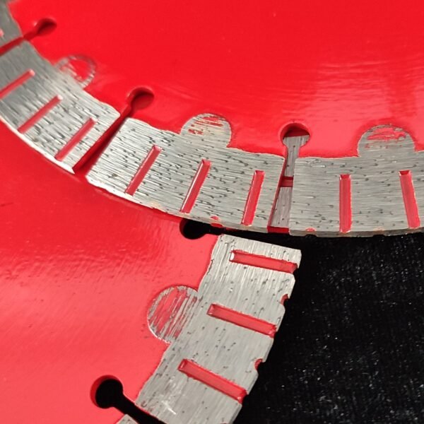 Reinforced protective elements around each segment provide superior impact resistance, preventing edge chipping and segment loss when cutting through hard aggregates or reinforced materials.